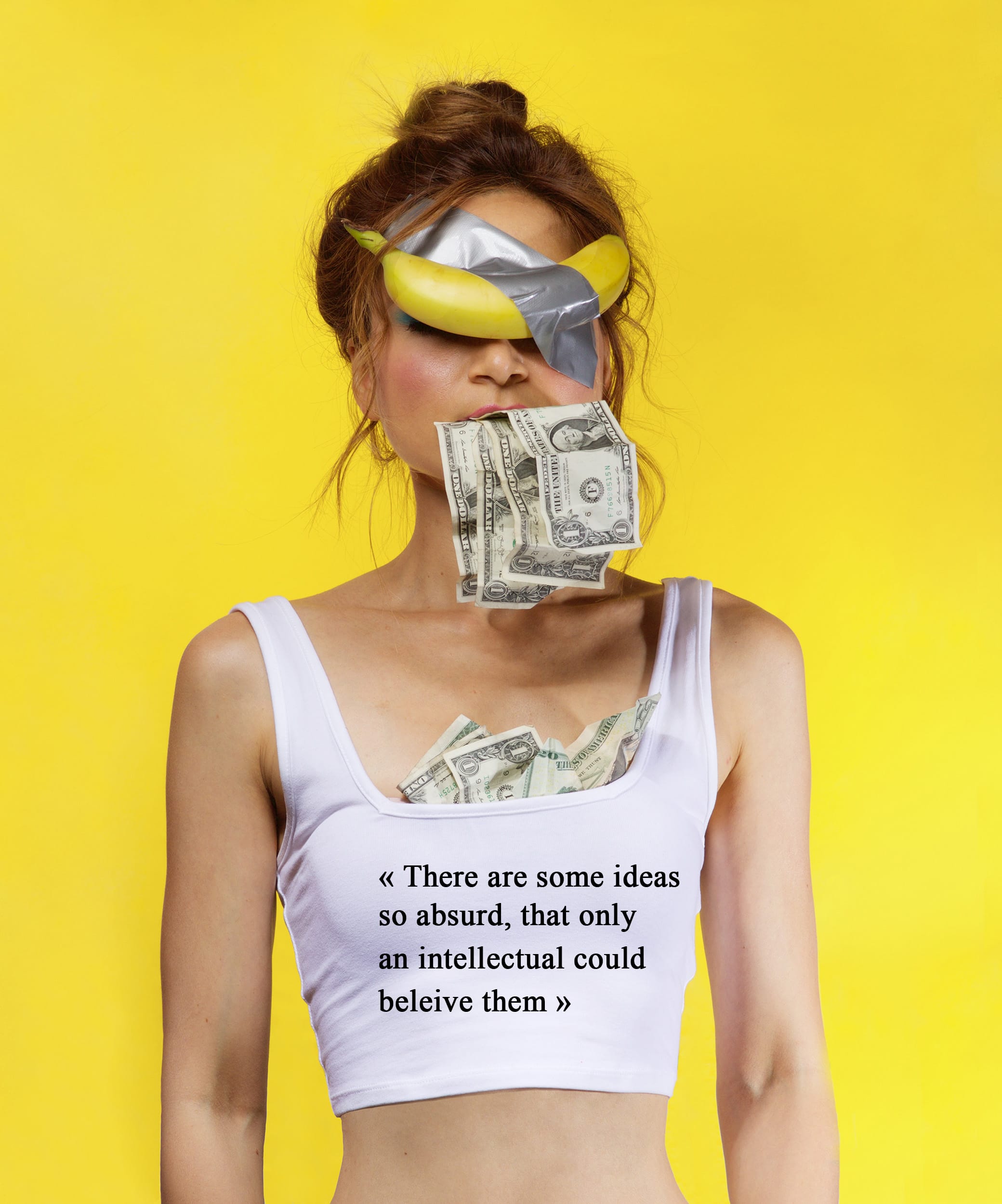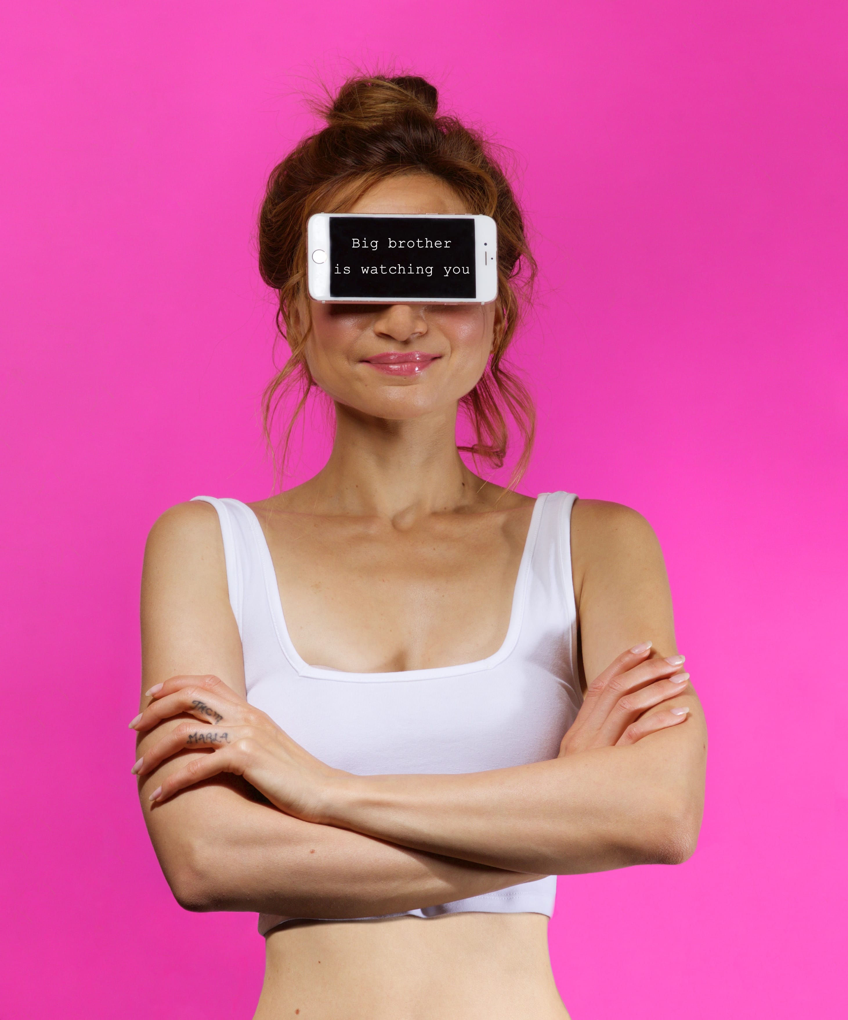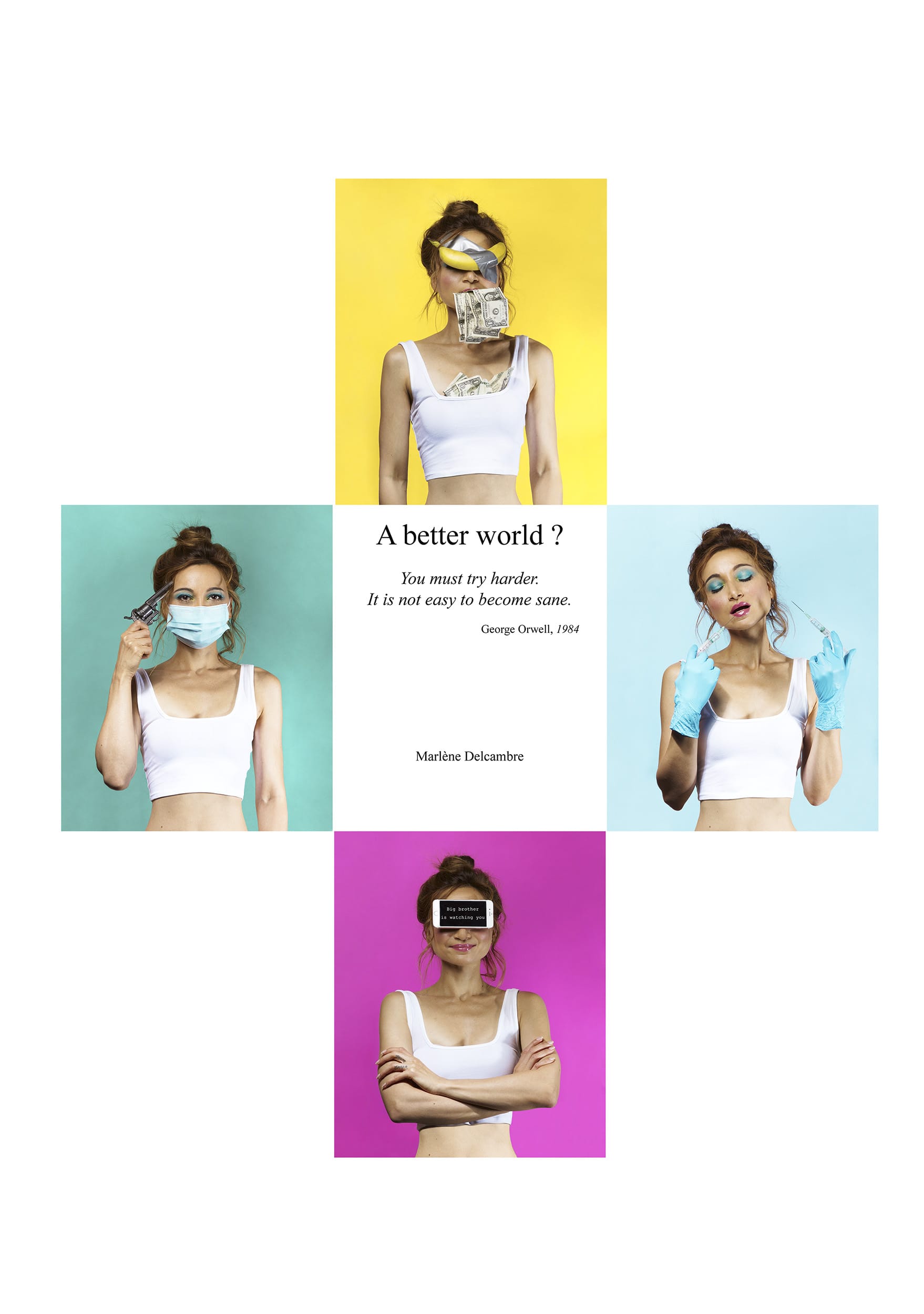 This series of self-portraits draws its inspiration from George Orwell's 1984. Marlène illustrates the drifting of society and its excesses, in particular the