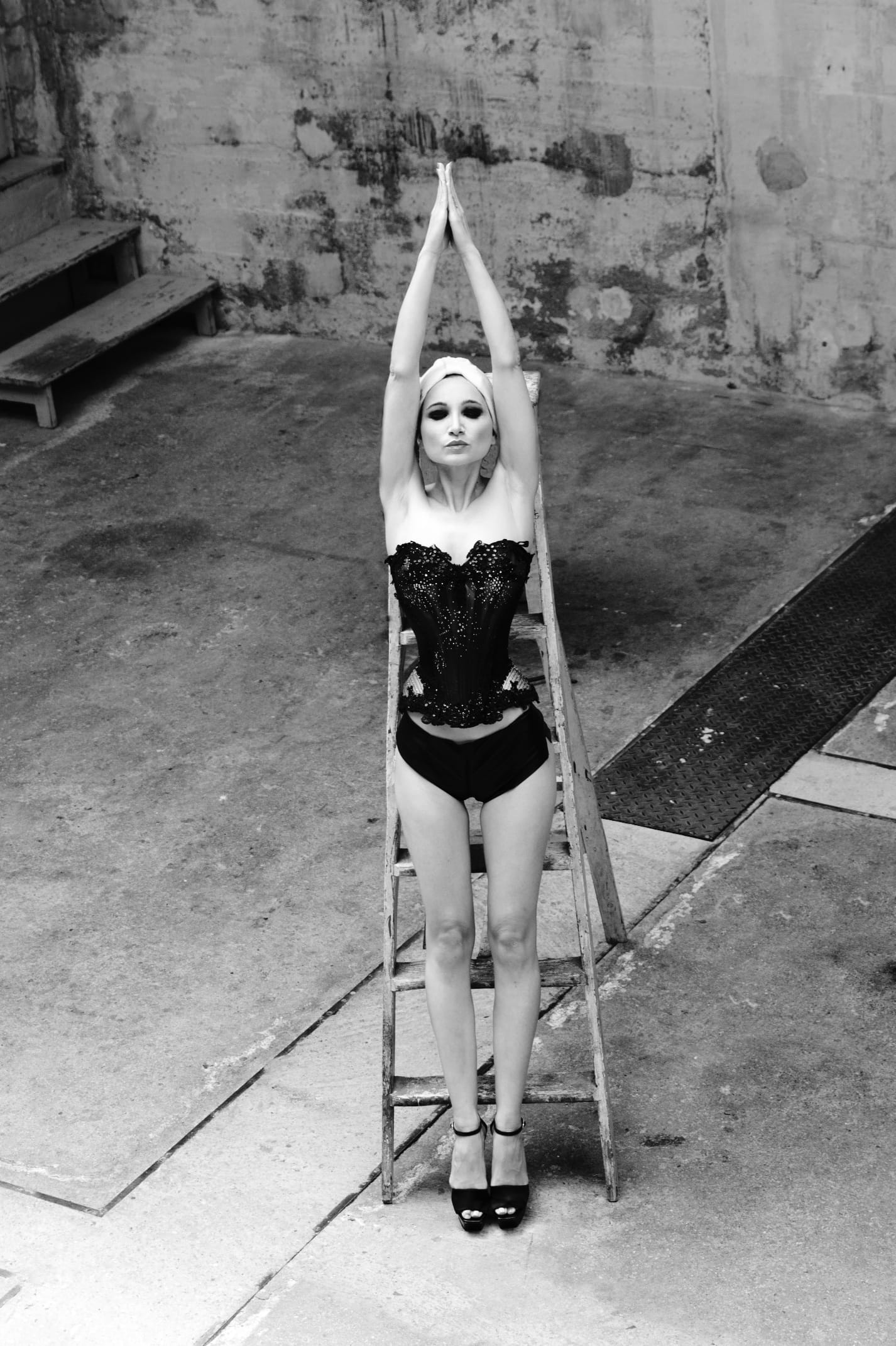 Une baigneuse luxueuse, se perd dans cet atelier désertique où elle recherche l’eau qu’elle n’a plus, ayant trop abusé d’elle